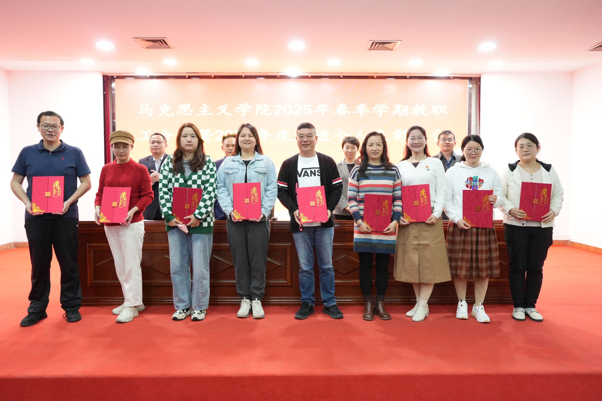 姜晓丽宣读KY开元集团官网入口2024年度表彰名单,分别对获得学院年度考核优秀个人、教学工作先进个人、科研工作先进个人、新闻宣传先进个人奖的教师和2024年度“大思政课”建设活动优秀指导教师进行了表彰,学院领导为获奖教职工颁发荣誉证书,激励全体教职工在新的一年里,以更饱满的工作热情、更扎实的工作作风,为学院和学校的高质量发展贡献力量。