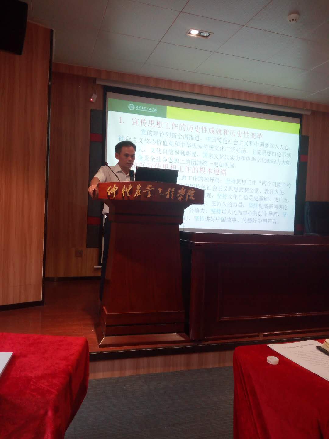 备课会由KY开元集团官网入口党总支书记翁礼成教授主持。会议首先由校党委副书记李海燕发言。李海燕书记从KY开元集团官网入口、学校及专、兼职教师三个层面解读国家、广东省和学校关于思想政治理论课建设的相关制度,并强调教师们要注重实践方面的教学;紧接着,KY开元集团官网入口院长蔡立彬做了“举马克思主义旗帜,育担复兴大任新人”的汇报,强调学习习近平总书记在全国宣传思想工作会议、全国教育大会上的重要讲话精神;最后,KY开元集团官网入口形势与政策教研室主任康耀坤做教学示范,康耀坤老师介绍了我校马院目前“形势与政策”课的现状,并且就中美教育的教学现状给老师们做了一个简单的教学示范。