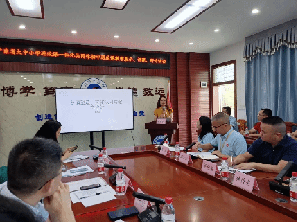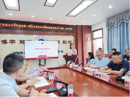 在思政课教学研究心得交流环节,丰顺县的思政课教师分享了心得体会并提出了思政课教学中遇到的问题和困惑。袁惠琴、张颖、董凌波、郭小娜分别作了主题为《初中道德与法治高质量备考策略》《留守儿童的思政课教学特殊性问题》《如何利用地方文化资源引导学生热爱家乡》《大中小学思政课一体化教学与学生的成长成才》的讲座。老师们结合自身的科研领域和工作经验就以上主题进行了深入探讨,他们的发言引发了在场师生的共鸣和思考,为更好地推动大中小学思政课一体化建设提供了有益借鉴。