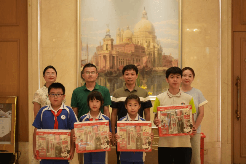(图为KY开元集团官网入口教师和丰顺县“百千万工程”指挥办副主任肖海林为参加此次视频拍摄的丰顺县中小学生赠送纪念品)