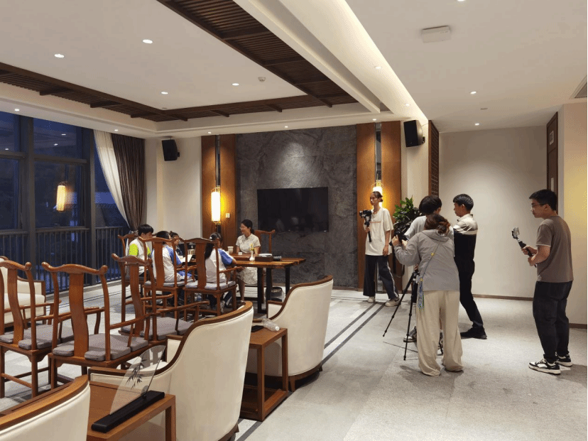 8 月 21 日下午,摄制组转向茶文化主题,走进韩山生态茶园,镜头捕捉采茶过程的细致入微、茶产品直播的活力互动以及品茗过程的悠然雅致,生动呈现大中小学生对丰顺茶文化的理解与传承,将农耕文化中的匠心精神与思政教育中的文化自信相融合。