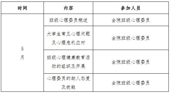 3.培训对象:全院班级心理委员