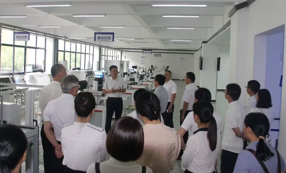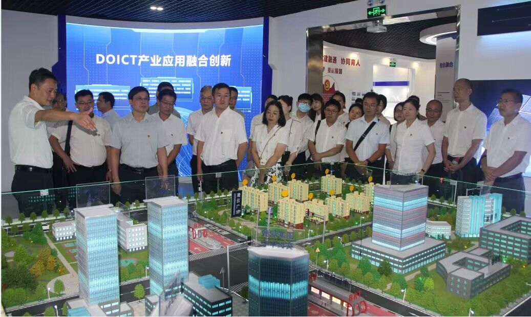 干部一行先后参观了第一工业中心的光电芯片智能制造“芯火”基地、集成电路虚拟仿真实训室、封装实训室、激光加工中心、5G产教融合基地,考察了纺服学院的都市丽人产业学院、大学生创业样板店、世界技能大赛时装技术项目基地及服装智能制作实训室,调研了旅游学院美好生活技能创新创业实践基地、F+森系法餐厅、教学厨房、调酒实训室和茶艺实训室等核心场所,并就智能光电技术国家双高专业群及纺服学院混合所有制学院等建设情况进行了深入交流。