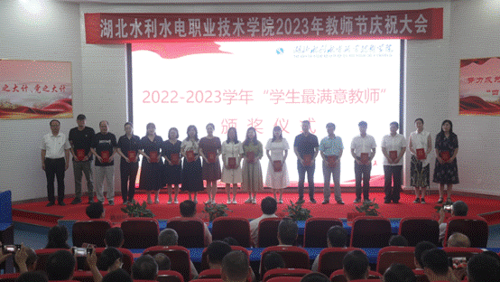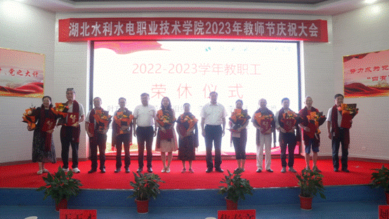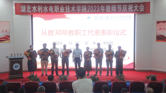 大会对2022-2023学年“学生最满意教师”进行了表彰,向从教三十年教职工和2022-2023年度退休教职工献花并颁发证书。