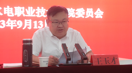 王玉才在会上强调,要强化政治引领,在深学深悟中筑牢思想基础,自觉把学院发展融入区域发展和水利事业发展当中。筑牢纪律意识,在分析研判中营造风清气正的政治生态。聚焦立德树人根本任务,加快构建现代职业教育体系,弘扬工匠精神,培养更多高素质技术技能人才、能工巧匠、大国工匠。要将主题教育学习成果真正化作干事创业强大动力,努力办好人民满意的职业教育。