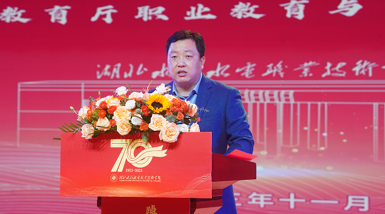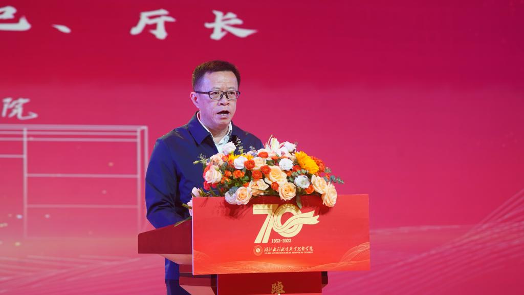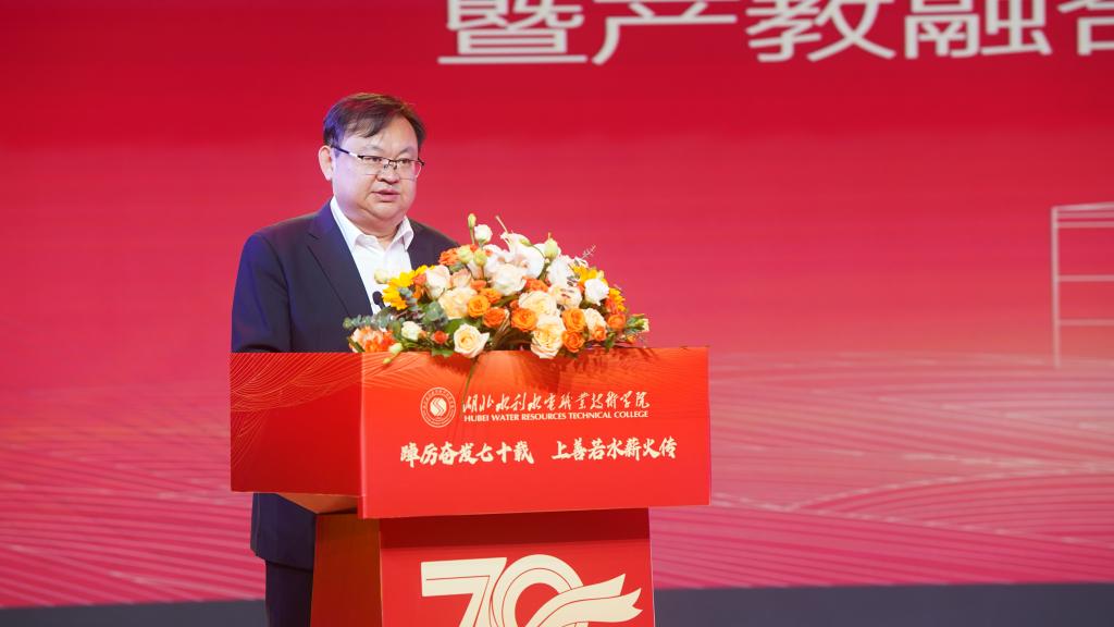 湖北省水利厅党组书记、厅长廖志伟在讲话中,向beat365平台官方网站办学70周年表示热烈祝贺,肯定了学校70年来建设发展取得的成绩。他指出,近年来,学校全面贯彻党的教育方针,积极适应行业和地方发展需求,办学条件得到质的改善,专业建设显著提升,特别是学校立足水利特色,聚焦国家重大战略需求,持续推进职普融通、产校融合、科教融汇,动态调整学科设置和人才培养方式,为水利行业培养了大量高素质技术技能人才。希望学校坚持正确办学方向,彰显水利办学特色,以服务中华民族伟大复兴为重要使命,为党育人、为国育才,办好人民满意教育,培养堪当民族复兴大任的新时代水利人才、各类人才,为湖北水利事业和区域经济社会发展做出新的更大贡献。