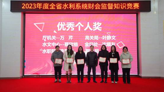 本次竞赛分初赛、复赛和决赛三个环节,历时时间长、参赛人数多、考查范围广。前期,通过为期20天的线上竞赛选出23支队伍69名选手,历经初赛和复赛层层选拔,最终6支代表队18位选手脱颖而出。这是一场知识的对垒、智慧的交锋。参赛选手们个个沉着冷静、专注认真、配合默契、拼劲十足,展现了新时代水利财会人员的独特风采。决赛中抢答环节将现场紧张激烈的气氛推向了高潮,经过激烈角逐,最终,厅机关代表队、高关局代表队、水文中心代表队比分领先,荣获一等奖。