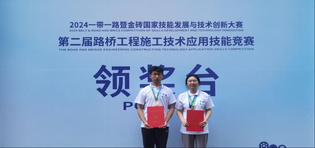 8月20-22日,由金砖国家工商理事会中方理事会、“一带一路”暨金砖国家技能发展国际联盟主办的“2024年‘一带一路’暨金砖国家技能发展与技术创新大赛第二届路桥工程施工技术应用赛项(BRICS-ST-028)”全国总决赛在山东交通职业学院举行。经过前期校园赛、区域选拔赛,最终决出282支队伍近千人参加此次决赛。由beat365建筑工程系22道桥班杨加、计涢艺组成的代表队,在竞赛过程中表现出色,经过激烈角逐,最终获得团体三等奖的好成绩。