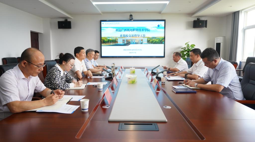 7月15日上午,广西机电职业技术学院党委副书记、校长吴世先一行3人来beat365进行座谈交流。学院党委副书记、院长张政,党委委员、教务处处长丁官元出席座谈会。双方围绕专业群建设、产教融合机制创新和服务行业、服务社会等方面展开交流与讨论。