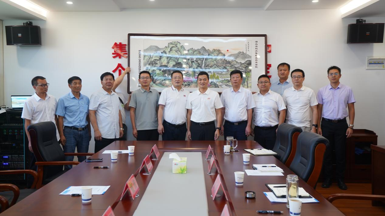 会后,英山县金家铺镇党委书记王锦强代表镇政府向学院赠送乐家山村全貌画卷。