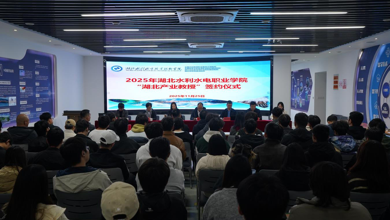 11月25日下午,beat3652025年“湖北产业教授”签约仪式暨学术报告会在汤逊湖校区水利楼212智慧水利实训室举行。湖北省水利水电规划勘测设计院有限公司党委委员、副总经理姚晓敏,党委委员、副总经理、工会主席项珺,人力资源部部长李杰,学院党委书记姚祖军,党委委员、人事处处长桂剑萍,水利工程系相关负责人及110名师生共同参加活动。