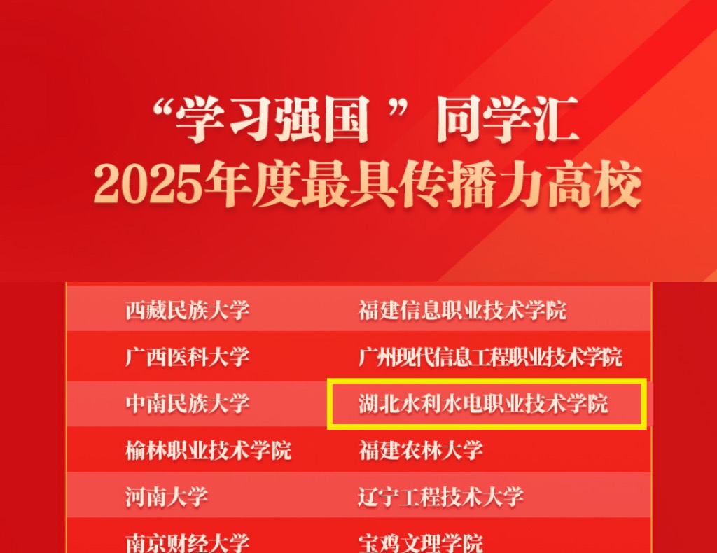 近日,中共中央宣传部、“学习强国”平台公布2025年度“同学汇”系列奖项评选结果,beat365从410所参评高校中脱颖而出,荣获“2025年度最具传播力高校”称号,是武汉市唯一上榜的职业院校。