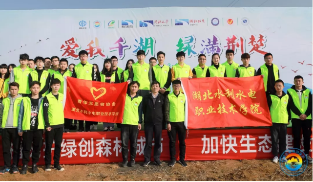 12日上午,由省水利厅、省林业局、湖北广播电视台联合举办的2019年“爱我千湖 绿满荆楚”义务植树暨湖泊保护志愿活动在鄂州市葛店经济技术开发区曹家湖垱网湖正式启动。院党委书记甘齐顺,学工处负责人及40位学生志愿者参加活动,在曹加湖畔志愿巡湖、捡拾垃圾、亲手栽树,以实际行动为世界增添一抹绿色,为湖泊保护贡献一份自己的力量。
