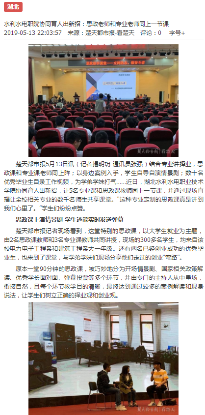 水利水电职院协同育人出新招:思政老师和专业老师同上一节课
