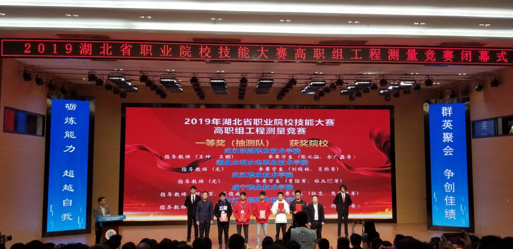 此次荣誉获得是继2018年湖北省职业院校技能大赛工程测量赛项推荐队、抽测队荣获双项一等奖后,再次蝉联此殊荣!一年一度的全省职业院校技能大赛,是一个难得的技能比武平台。为更好以赛促教,以赛促学,锤炼技能,水利工程系师生认真备赛,克服重重困难,以饱满的精神状态,精湛的技能表现,力压群雄,再次摘得桂冠,为校争光!