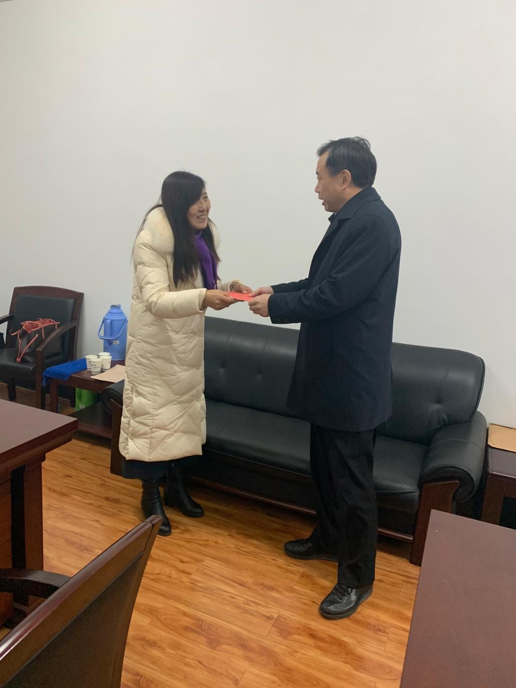 焦厅长一行在学院南湖校区慰问了湖北名师主持人、享受省政府专项津贴专家、王金玲教授,赞扬王教授为学院的发展所做的贡献,鼓励王教授再接再厉为学院美好的将来做出更大的贡献,并送上慰问金。王教授说“一定不辜负厅领导的期望,发挥好人民教师的光和热”