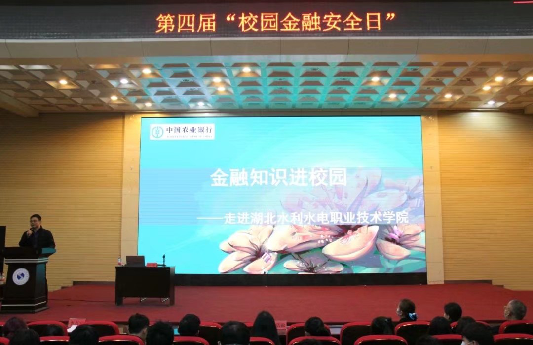 (张艺蕾)12月8日和12月10日下午,学院分别在汤逊湖校区和南湖校区举办了第四届“校园金融安全日”活动。本次活动由财务处和学工处联合举办,中国农业银行理财经理李璐作了专题讲座。财务处、学工处、院团委负责人,全体新生辅导员及600余名两校区学生代表参加了活动。