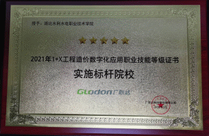 (建筑工程系)近日,学院喜获“2021年1+X工程造价数字化应用职业技能等级证书实施标杆院校”荣誉奖牌。