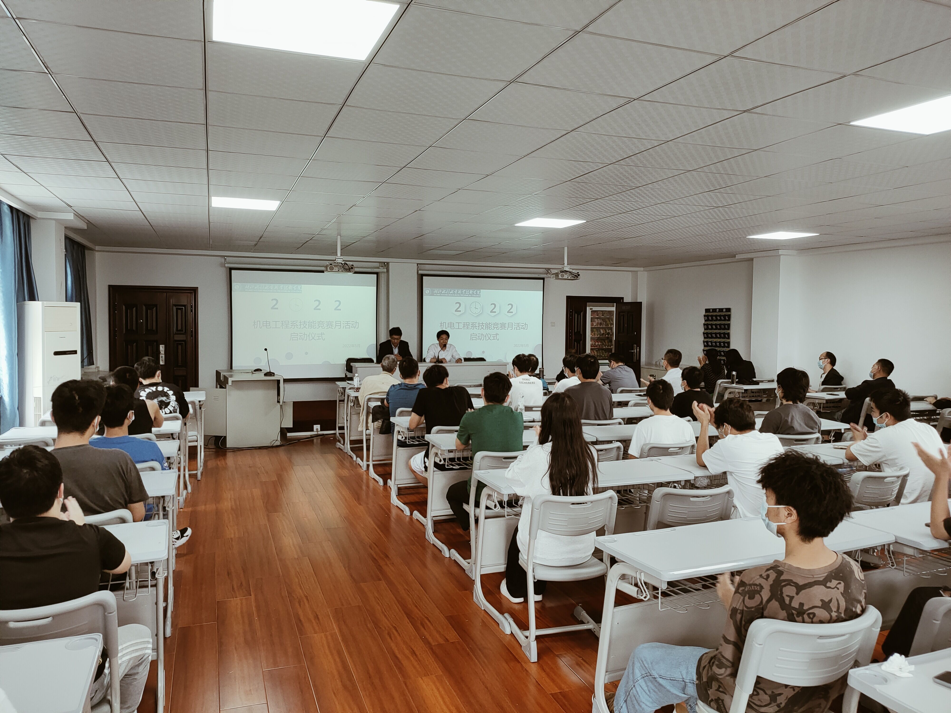 (王建波 郝玉龙)5月12日下午,机电工程系在南湖校区机电楼301培训教室举行“机电工程系学生技能竞赛月活动启动仪式”,系部负责人、各教研室主任、专业负责人和各专业学生代表参加了启动仪式。