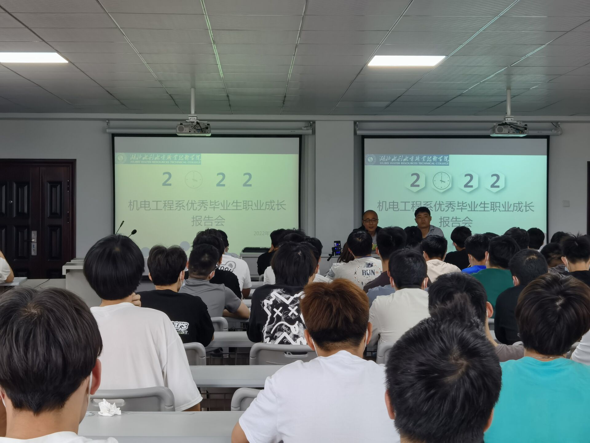 (黄莉 郝玉龙)5月12日下午,机电工程系在南湖校区机电楼301培训教室采用线下+线上的形式,召开了杰出校友职业成长分享报告会。机电工程系特邀2012级机电一体化技术专业三班毕业生操志双回到母校,分享了他的职业成长经历。机电工程系2020级机电一体化技术专业100名学生及相关专业教师参加线下报告会,线上近100名学生参加。
