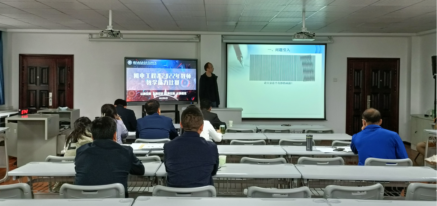 (机电工程系)4月14日,机电工程系在南湖校区机电楼301培训教室举办2022年教师教学能力比赛。系部负责人以及全体教师、实验员全程观摩了比赛。