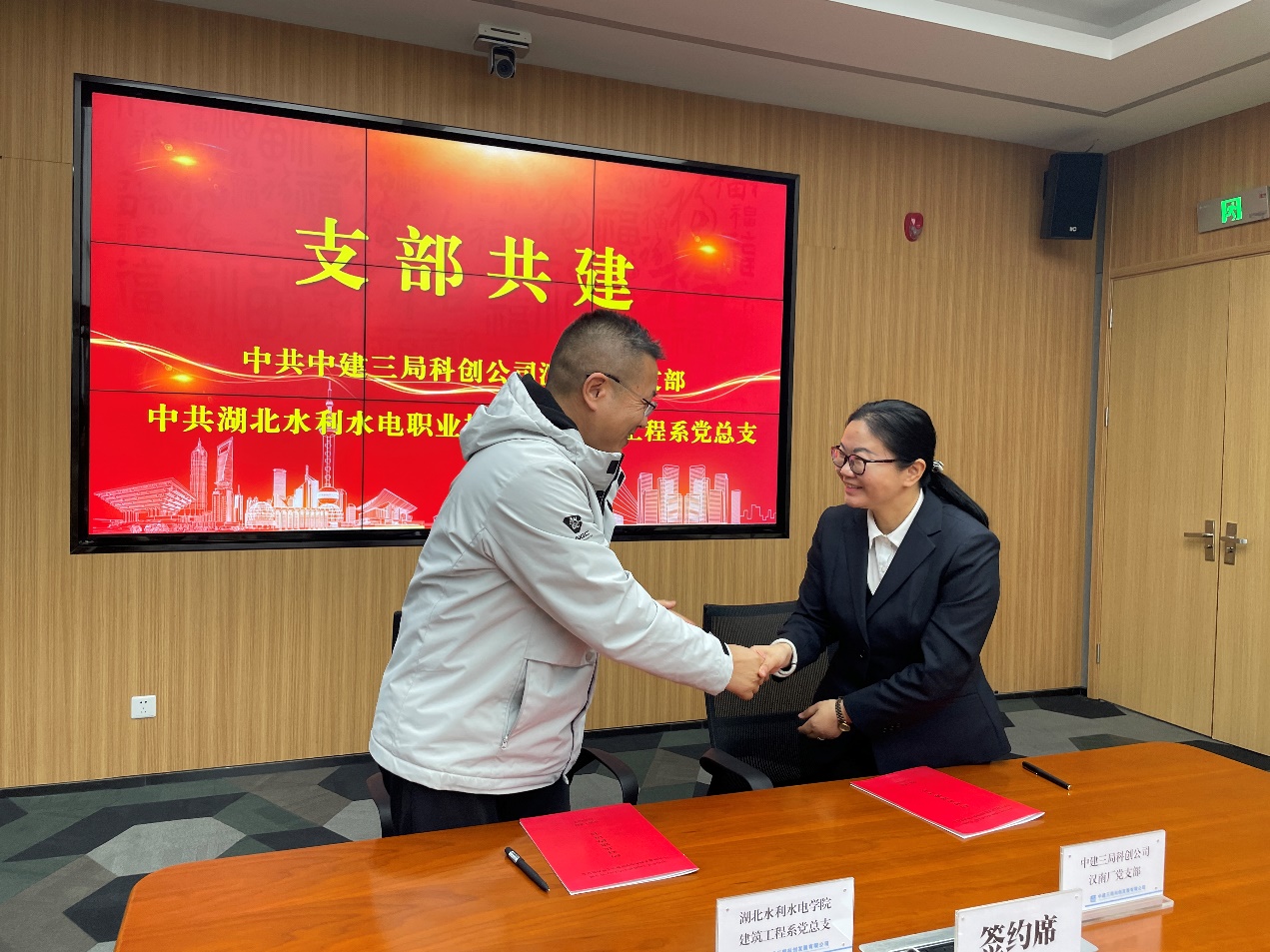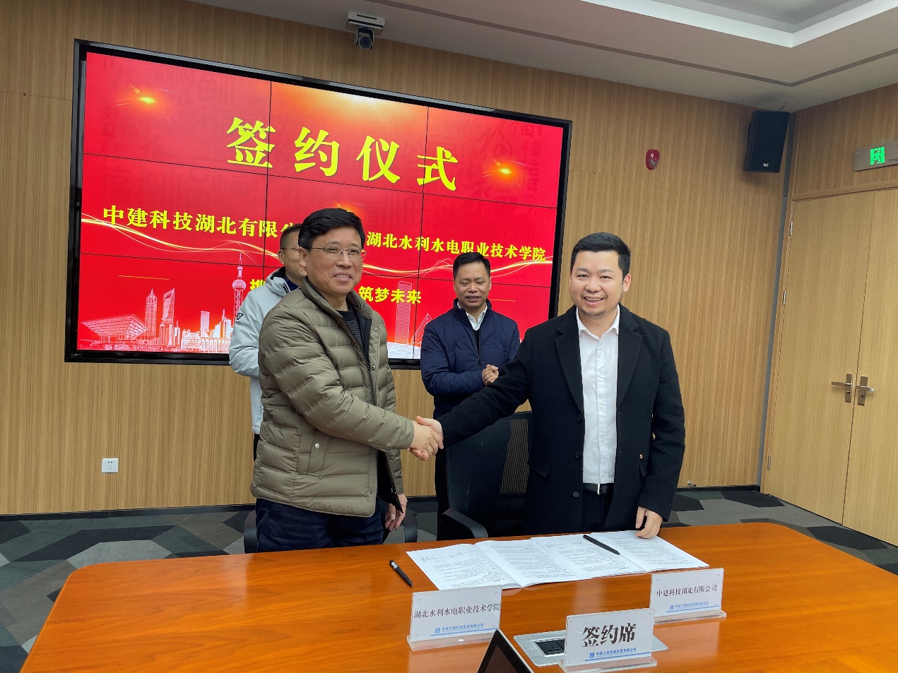 (余丹丹)3月23日上午,学院党委委员、副院长庹祖明率建筑工程系、继续教育部负责人、建筑系党总支支委成员、建筑系骨干教师一行8人赴中建三局科创发展有限公司进行参观交流,随后在中建三局科创发展有限公司工厂事业部会议室举行了校企合作框架协议暨支部共建签约仪式,中建科创公司执行总经理高勇主持签约仪式。