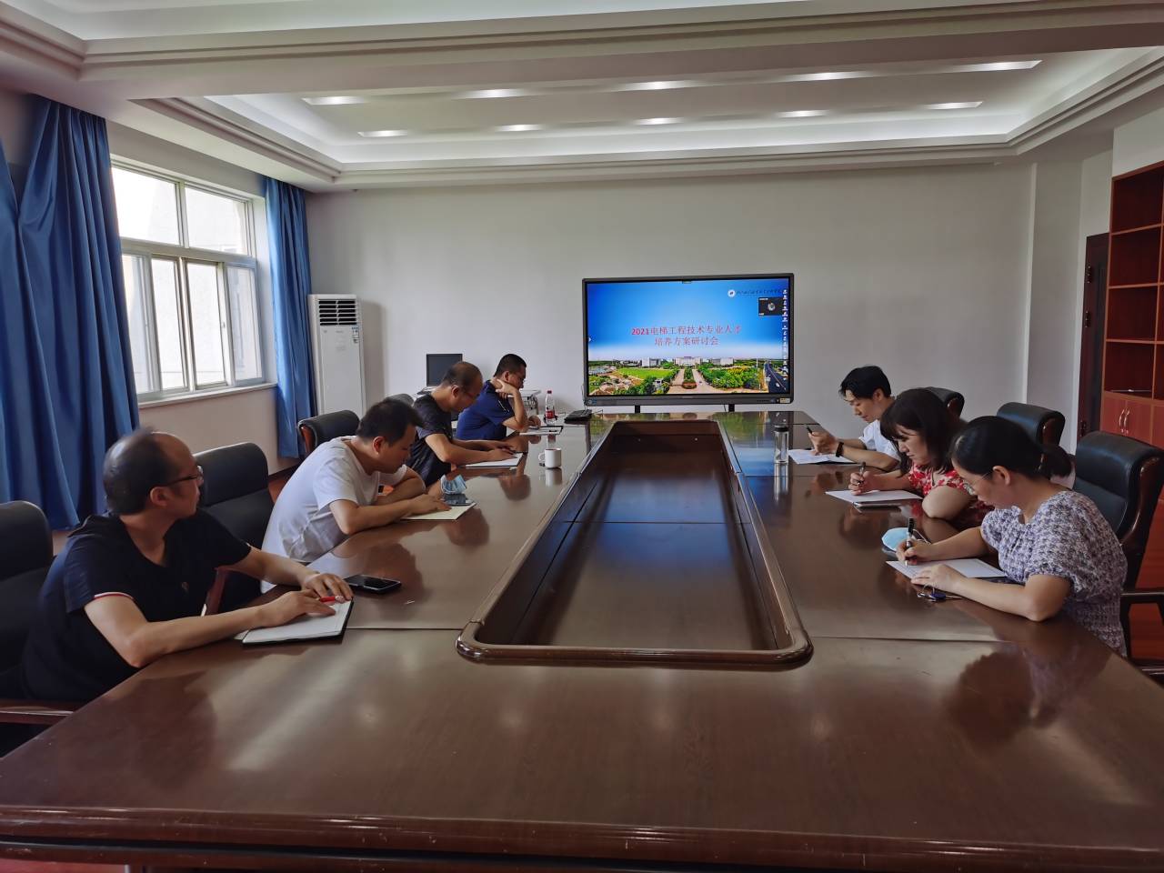 (郝玉龙)8月18日下午,机电工程系各专业群依次在南湖校区机电楼三楼会议室召开2021级人才培养方案修订研讨会。按照疫情防控要求,本次研讨会采用系部相关领导、各专业负责人线下参会,其他专业课教师线上参会的线上线下相结合形式开展。