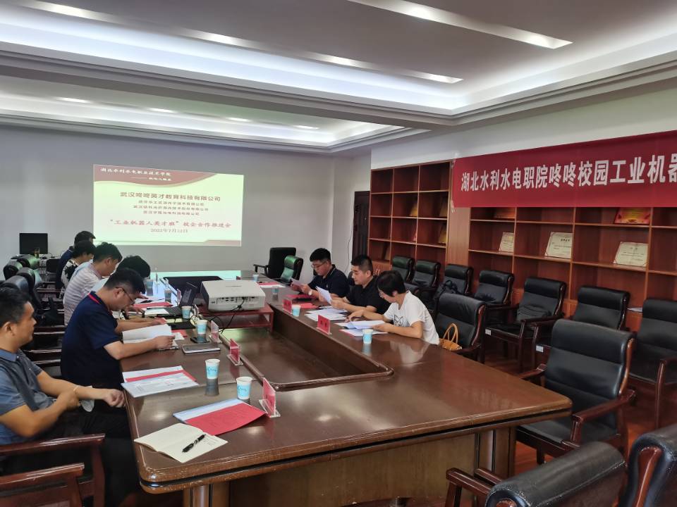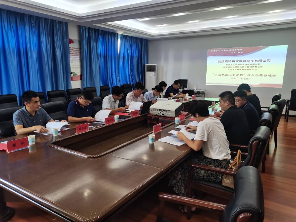(戴华 邵军)7月12日,beat365机电工程系在南湖校区机电楼会议室召开 “工业机器人英才班”校企合作推进会。学院党委委员、副院长黄泽钧,机电工程系负责人、工业机器人专业负责人和部分教师、武汉咚咚英才教育科技有限公司负责人参加了会议。