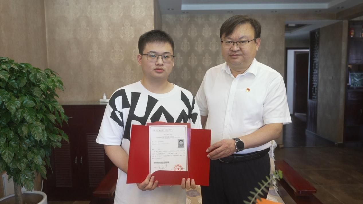 在送达现场,王玉才向周昊同学送上录取通知书和鲜花,对他和家人表示了祝贺,进行了亲切交谈,“希望他在三年时间里真正学有所成,思想上,积极向党组织靠拢;学习上,学好专业知识和技能;生活中,多参加社会实践活动,积极帮助同学共同进步。要有所作为,不断进步,真正成为栋梁之材。”