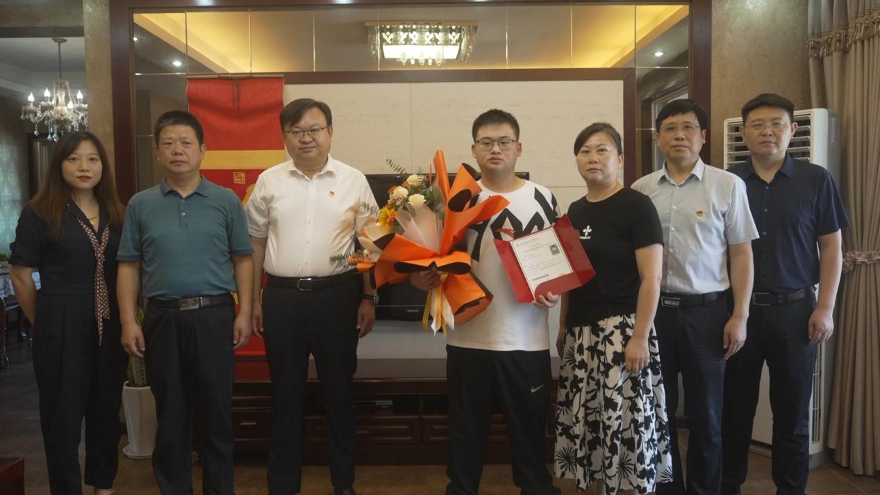 (招毕办)8月14日上午,学院党委书记、院长王玉才亲赴武汉黄陂送出beat3652022级新生第一份录取通知书。党委委员、副院长庹祖明和招生办相关同志陪同。