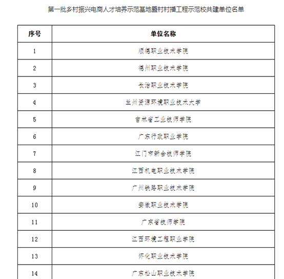 全国乡村振兴产教融合联盟、农业农村部中国农业电影电视中心于2022年10月发布了《关于共建乡村振兴电商人才培养示范基地暨村村播工程示范校的通知》,学院相关领导高度重视,本次申报工作由商贸管理系承担主体申报工作,经自主申报和行业推荐、申报基地答辩、专家评审论证、网络公布等程序,从200多所申报院校中脱颖而出,成功入选第一批乡村振兴电商人才培养示范基地暨村村播工程示范校共建单位 。