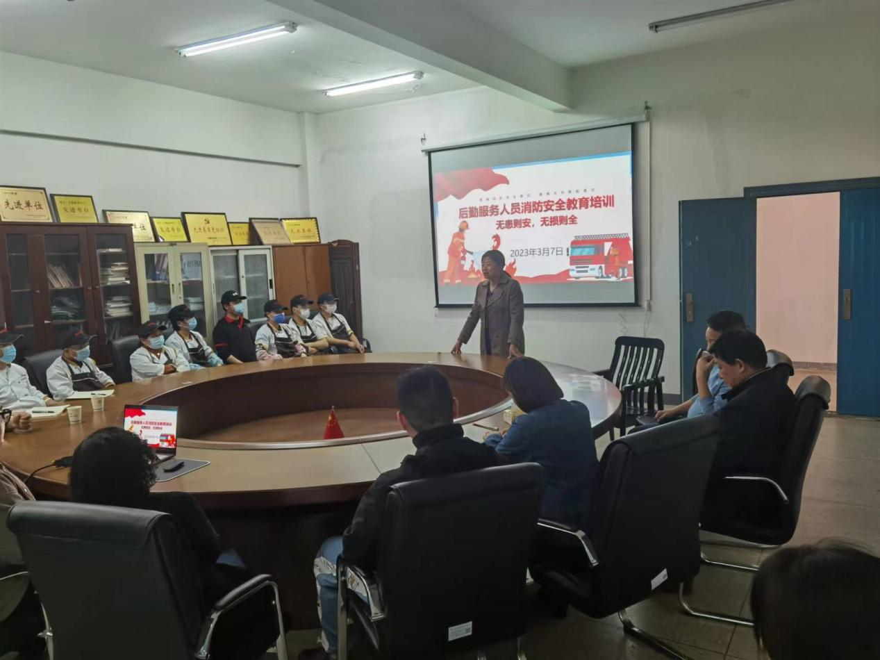 为进一步提高学院后勤服务人员的消防安全意识,树立“抓消防安全,保高质量发展”的理念,2023年3月7日下午,后勤服务中心在保卫处的指导、支持下,开展消防安全教育培训及消防实操演练,后勤职工、食堂新进员工、楼栋管理员及商户等40余名后勤服务人员参加。