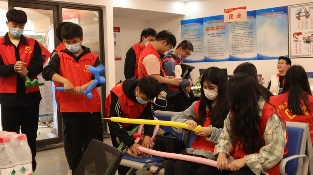 3月7日下午,在保利清能西海岸北区发放气球给社区女性居民。水院志愿者们大显身手,用气球制作鲜花、小狗、帽子等各种形态可爱的造型,现场气氛热烈,受到了社区居民们的欢迎。