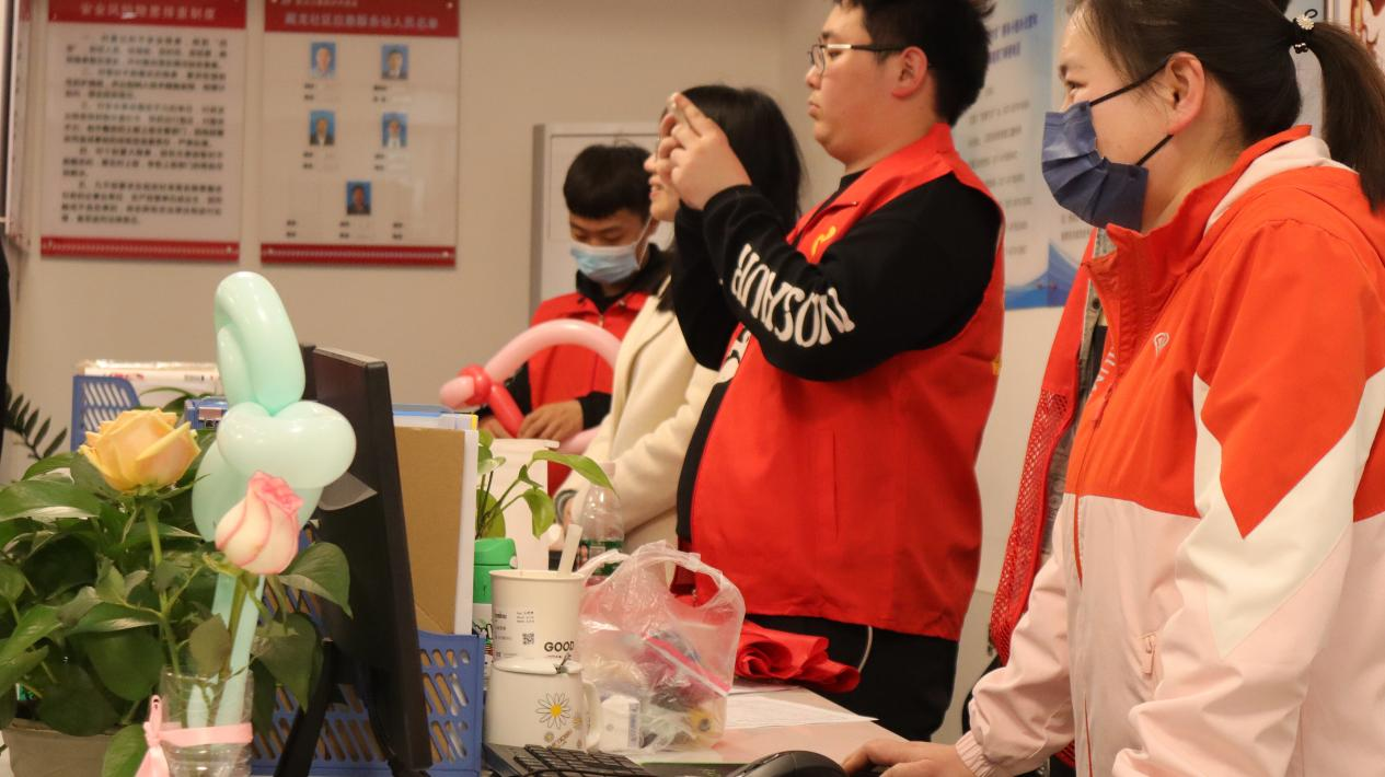 小区内活动结束之后,志愿者们前往藏龙社区,为社区工作人员们制作气球花朵,向长期以来投身于社区工作岗位的女性们致以节日的祝福。