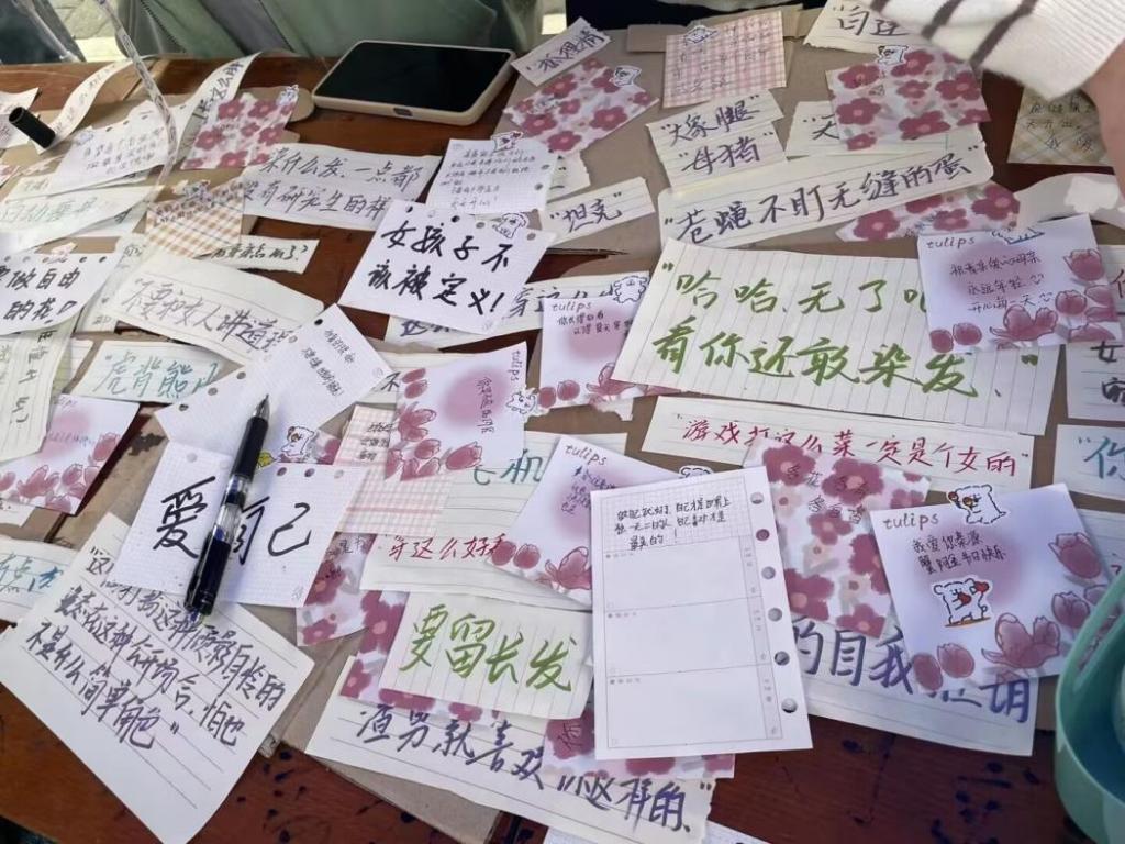 本次活动不少同学积极参与,并写下自己对新时代女性鼓励的话语和温柔的句子,展现出新时代青年学子的独特风采。