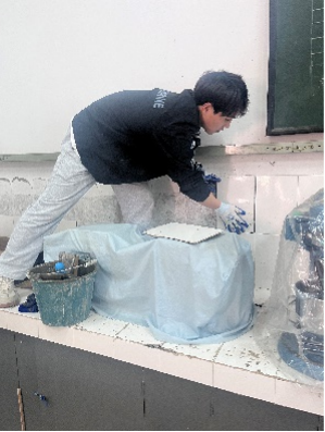 3月9日当他获悉实验室操作台瓷砖存在大面积破损现象,影响了实验室的整体形象和实践教学的开展,作为一个“贴面能手”,他自告奋勇承担此项修补任务。他先清除旧瓷砖,测量缺损尺寸,选择实验室现存的合适尺寸的瓷砖片,重新铺贴完整,使得操作台恢复原样。他的行为得到了同学和老师们的称赞,知行结合,学以致用的工匠精神在他身上体现的淋漓尽致。曾获“优秀团员”“系级优秀生”“社会实践优秀个人”“国家励志奖学金”等荣誉的他在学习上刻苦钻研专业知识,在工作和生活里团结同学,并积极参加校内外各类社会实践活动。他曾在暑假期间细心热情帮助村民,圆满完成村委会布置的工作任务。