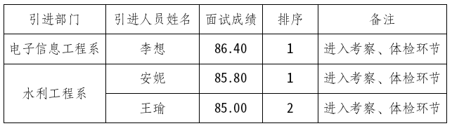 根据学院《高层次人才引进考核办法(试行)》的要求,经报名、资格审查、面试等环节,现将2025年高层次人才引进面试成绩及进入考察体检人选名单进行公布。