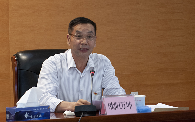 欧阳万坤强调,在全党开展“不忘初心、牢记使命”主题教育,是以习近平同志为核心的党中央为弘扬伟大事业伟大梦想作出的重要部署,作为省水利厅主题教育督导组,责任重大,使命光荣,督导组将认真贯彻执行指导工作规定,严格要求自己,尽力发挥好督办职责,切实做好联络工作,希望大家共同把这次主题教育工作完成好。一是要紧扣根本任务,扎实推进。把学习习近平新时代中国特色社会主义思想和讲话精神作为重中之重,并贯穿到整个学习教育过程中,把学习教育开展整治作为重要抓手,全过程都要抓住中央和省委的具体要求。二是围绕五个目标,扎实推进。主题教育三个月的时间,在有限的时间内实现预期的目标,关键是要在解决突出问题上下真功夫,既解决思想问题又要解决实际问题,既解决共性问题又要解决个性问题。三是落实重点措施,扎实推进。把学和做结合起来,把查和改贯穿起来,用思想自觉引领行动自觉,用行动自觉深化思想自觉。四是坚持好的作风,扎实推进。对可能出现的各种形式主义要提前预判、有效防范,坚决克服。要把力戒形式主义、官僚主义作为主题教育的重要内容,也是我们做好这次主题教育的作风要求和作风保障,要以良好的作风推进主题教育,为此我们要认真贯彻落实推进工作要求,切实改进工作作风,以过硬的作风开展好主题教育,决不能一边反形式主义一边又不知不觉搞形式主义,真正形成真抓实干的新风尚。五是突出以上带下,扎实推进。充分发挥领导机关、领导干部的示范带头作用,各级领导干部都要真正地把自己摆进去,把职责摆进去,把工作摆进去,对照初心使命,对照人民对优质水资源水环境的向往,以奋发有为的斗争精神,确保主题教育取得实实在在的效果,凝聚新时代湖北水利强省建设的磅礴力量,为谱写湖北高质量发展新篇章作出更大贡献。