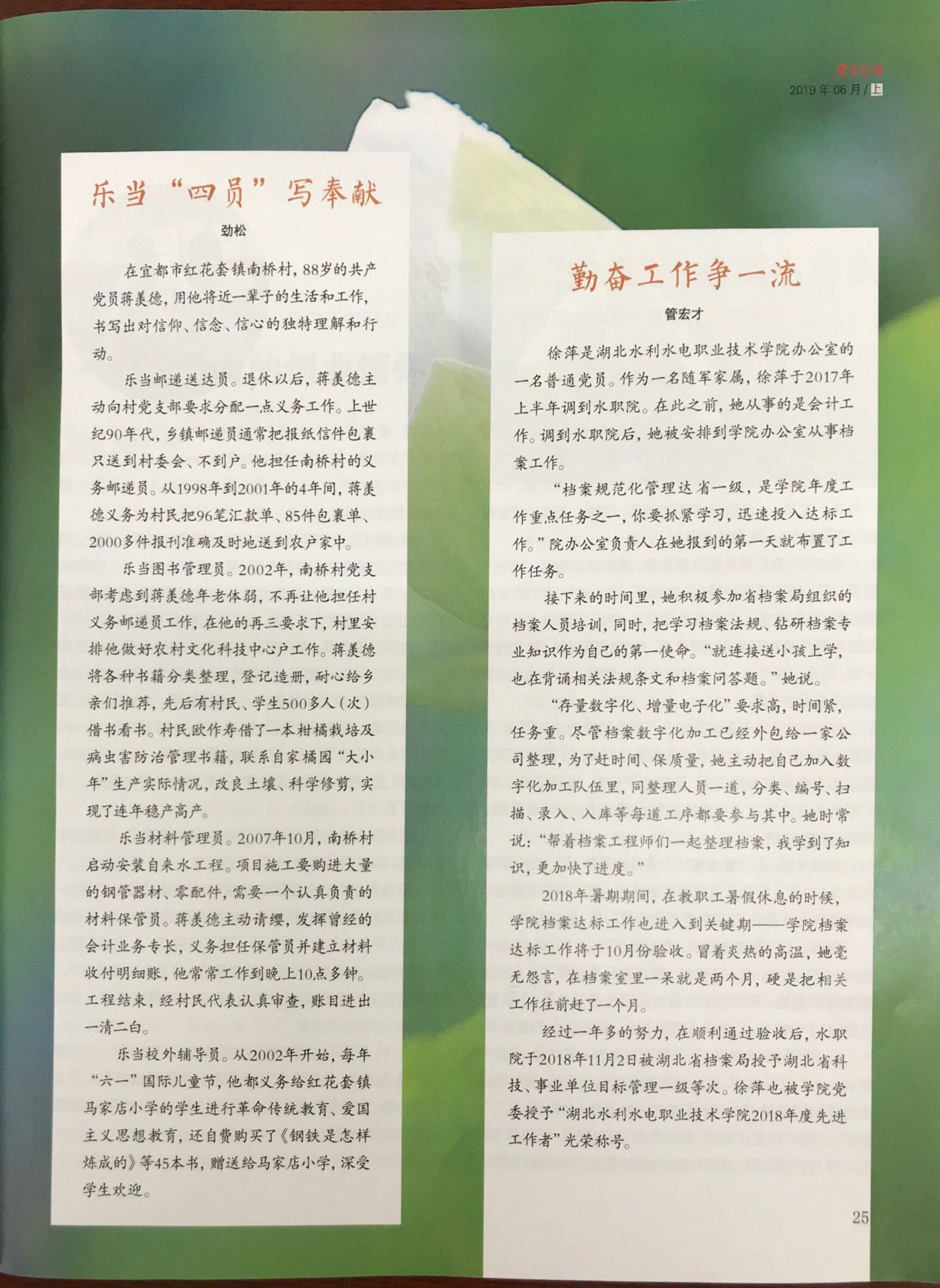 《党员生活》杂志是由中共湖北省委创办的湖北省唯一公开发行的综合性党刊,着力反映全省党员精神风貌,多侧面反映党员干部的工作、学习、生活。本次刊发文章推动学院全体党员干部发现身边的榜样,学习身边的榜样,有利于激励大家在平凡的工作岗位上争做先进,齐心协力共建优质高职院校。