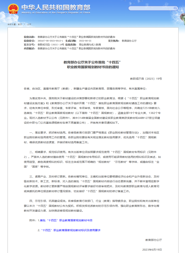 (一)教材被认定为“十四五”职业教育国家规划教材