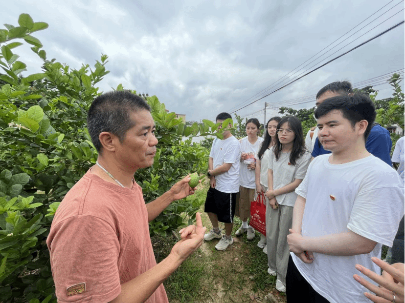 学生们走进帽峰山脚下的沙田柠檬种植基地,近距离观察柠檬的种植过程,感受乡村振兴的成果不仅体现在产业兴旺,更融入到乡村生活的每个细节中。通过参观合作社的农产品加工车间、电商直播间,学生们见证了科技与农业的深度融合。最让学生们震撼的是在田间地头与农户一起劳作的场景,他们“穿越”到乡村振兴的前沿阵地,切身感受脚踏实地、拼搏奋进的劳动精神,深刻体会到“小柠檬”如何成为乡村振兴的“大产业”。