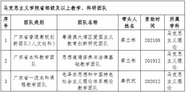 研团队1个、省级教学团队5个、校级本科教学团队1个、乡村振兴服务社会服务团队2个、备案建设科技创新团队1个。其中代表性教学、科研团队、基地如下: