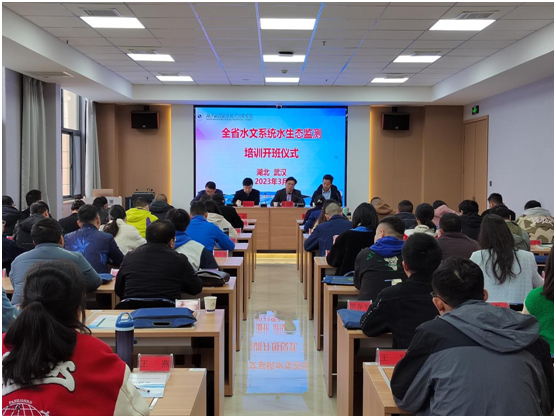 月27日上午,beat365承办的全省水文系统水生态监测培训班在傲水大厦成功举办。省水文水资源中心党委委员、副主任张幼成,华中农业大学水产学院党支部书记、教授周琼,湖北水职院党委委员、副院长庹祖明,院继续教育部相关人员及48名学员参加了开班仪式。省水文水资源中心水资源评价处处长聂华彬主持仪式。