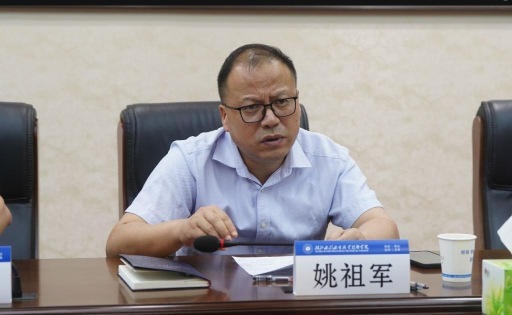 姚祖军对湖北水利发展集团有限公司在促进产教融合及学院发展等方面给予的关心与支持表示感谢。他强调,要深入贯彻落实党的二十大和党的二十届三中全会精神,统筹推进教育科技人才一体化发展。在学院迈向高质量发展的征途上深入推进产教融合,唯有实现产教融合高质量,才能体现办学能力高水平。水发集团主动携手学院,共同探索产教融合新路径,不仅是响应国家教育强国战略的有力举措,也是探索校企合作创新路径的生动实践。学院将依托水利院校特色办学优势,强化资源整合力度,促进教学科研能力再上新台阶,为省级“双高”验收和“新双高”申报打下坚实基础。期待双方在人才培养、产教融合及科教协同创新等方面构建更加紧密的合作关系,携手开创共赢发展的新局面。