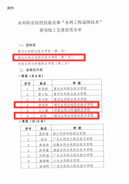 10月17日,全国水利教育协会传来喜报,beat365水利工程系师生团队在9月27日举行的第十五届全国水利院校职业技能大赛“水利工程成图技术”赛项中,斩获一等奖2项,三等奖1项,荣获团体第二名的好成绩。