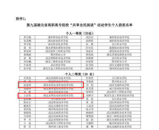 6月16日,2024年第九届湖北省高职高专院校“共享全民阅读”活动圆满结束,我校学子再创佳绩。由指导老师朱丹、张瑞琪、芦宇君、申斌、袁莉丽、陈洋指导的参赛学生赵连涛、王居易、舒欣荣分别荣获省赛个人赛事二等奖两枚、三等奖一枚,同时我校还荣获校团体三等奖和优秀组织奖。